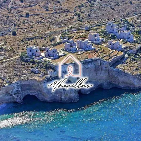 Die 2-Zimmer- Athevillas Chrysoula verfügt über private Parkplätze und eine Sonnenterrasse mit Aussicht aufs Meer.